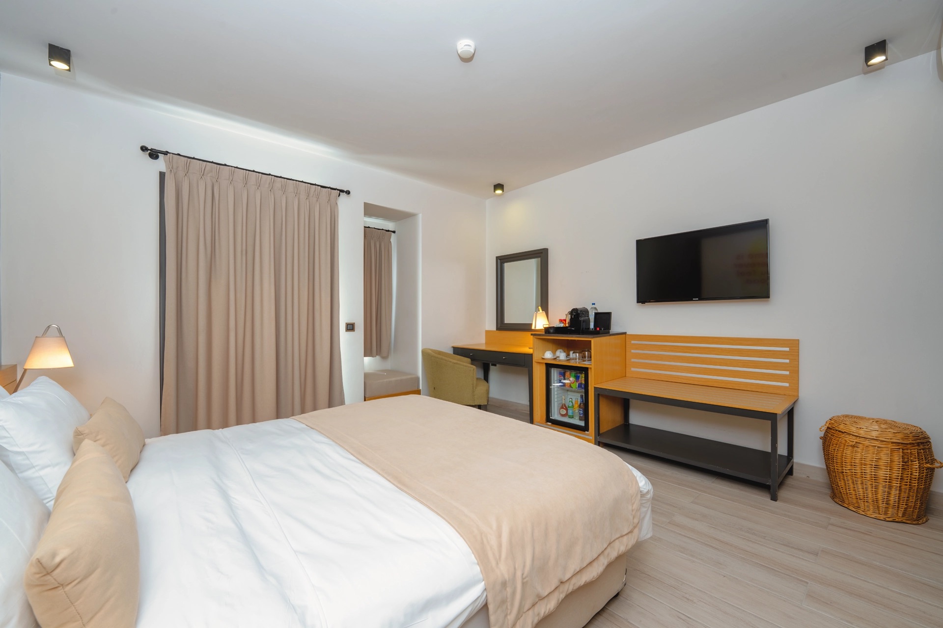 Bahçe manzarasına sahip balkon veya Fransız balkon seçeneği, misafirlere günün farklı saatlerinde temiz havanın ve sakin atmosferin tadını çıkarma imkânı sağlar. Bodrum’un huzurlu atmosferiyle uyumlu şekilde tasarlanan bu odalar, hem çiftler hem de birlikte seyahat eden misafirler için rahat ve keyifli bir konaklama deneyimi sunar